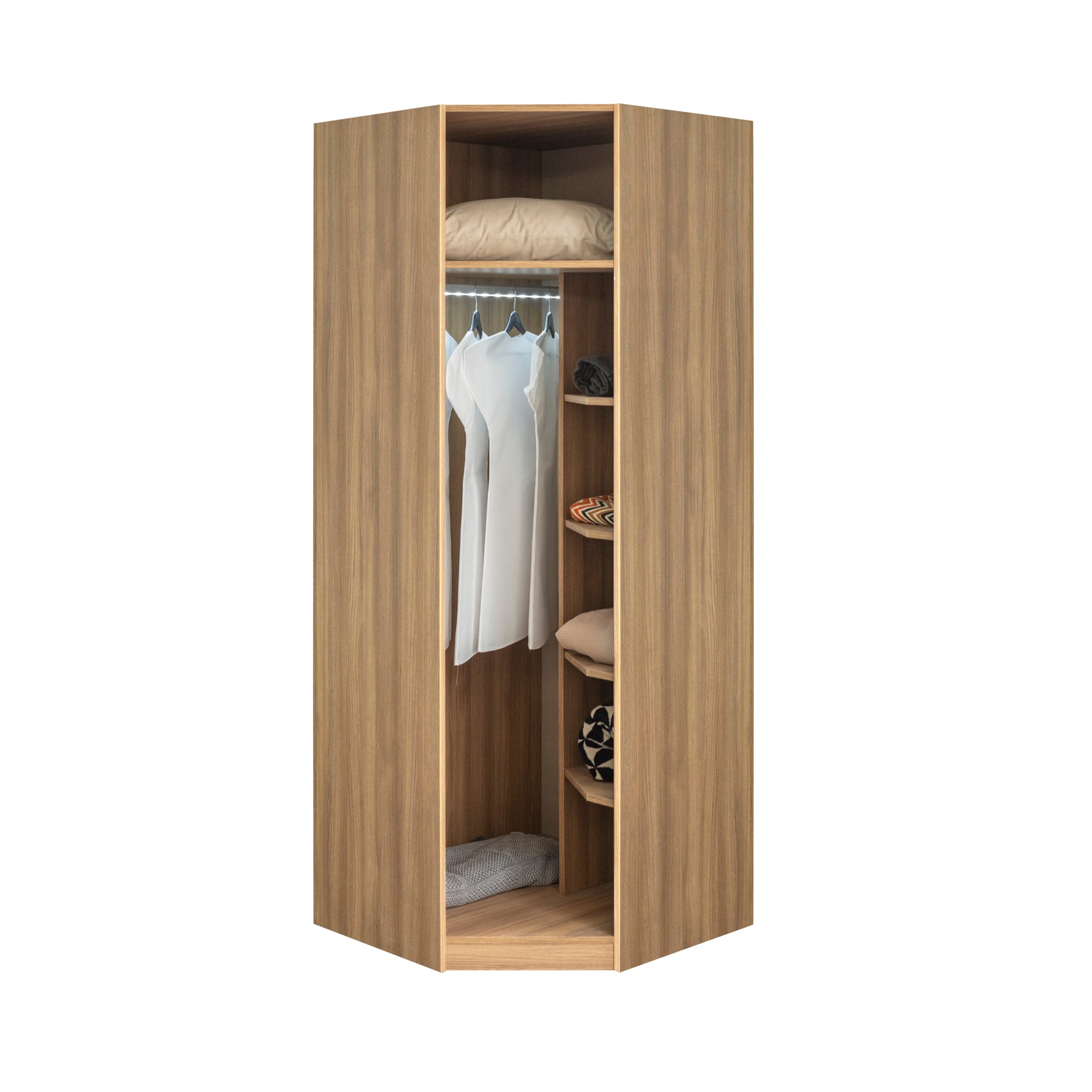 Cam panelli kapakları ve doğal ceviz gövdesiyle tasarlanan Bronze Raflı Köşe Dolap, modüler dolap sistemlerinde köşe alanlarını verimli şekilde değerlendirmek için ideal bir çözümdür. Bronz reflekte temperli cam kapakları ve bronz profilleriyle modern bir görünüm sunarken, raflı iç yapısı sayesinde düzenli ve erişilebilir bir depolama alanı oluşturur. Yatak odası ve giyinme odalarında Bronze serisiyle uyumlu, bütüncül bir tasarım sağlar.