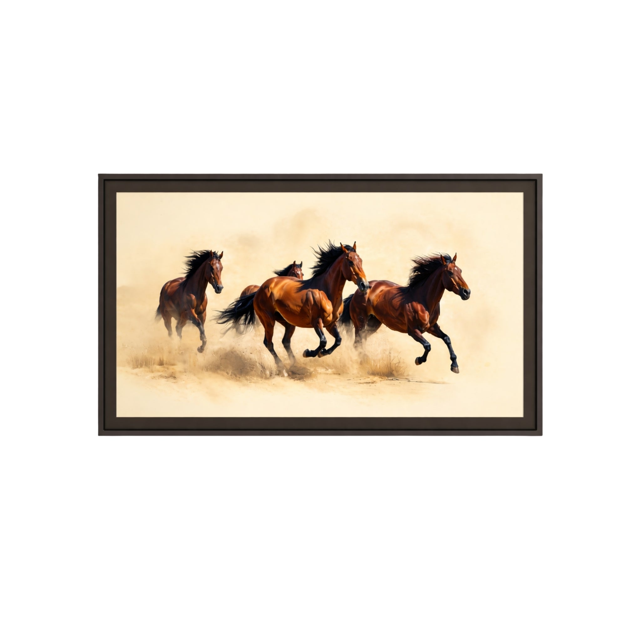 Dart Frame Üçlü At Tablo, hareketli at figürleri ve 3D dokulu yüzeyiyle yaşam alanlarına dinamik ve modern bir atmosfer kazandırır. Suni deri ve 3D teknikleri ile hazırlanmış yüzeyi, derinlikli ve farklı açılardan etkileyici bir görünüm sunar. Alüminyum çerçevesi sayesinde hafif, dayanıklı ve uzun ömürlü bir kullanım sağlarken, çağdaş dekorasyon stilleriyle uyum içinde sergilenebilir. Ölçüsü ile duvarlarda şık ve dikkat çekici bir odak noktası oluşturur.