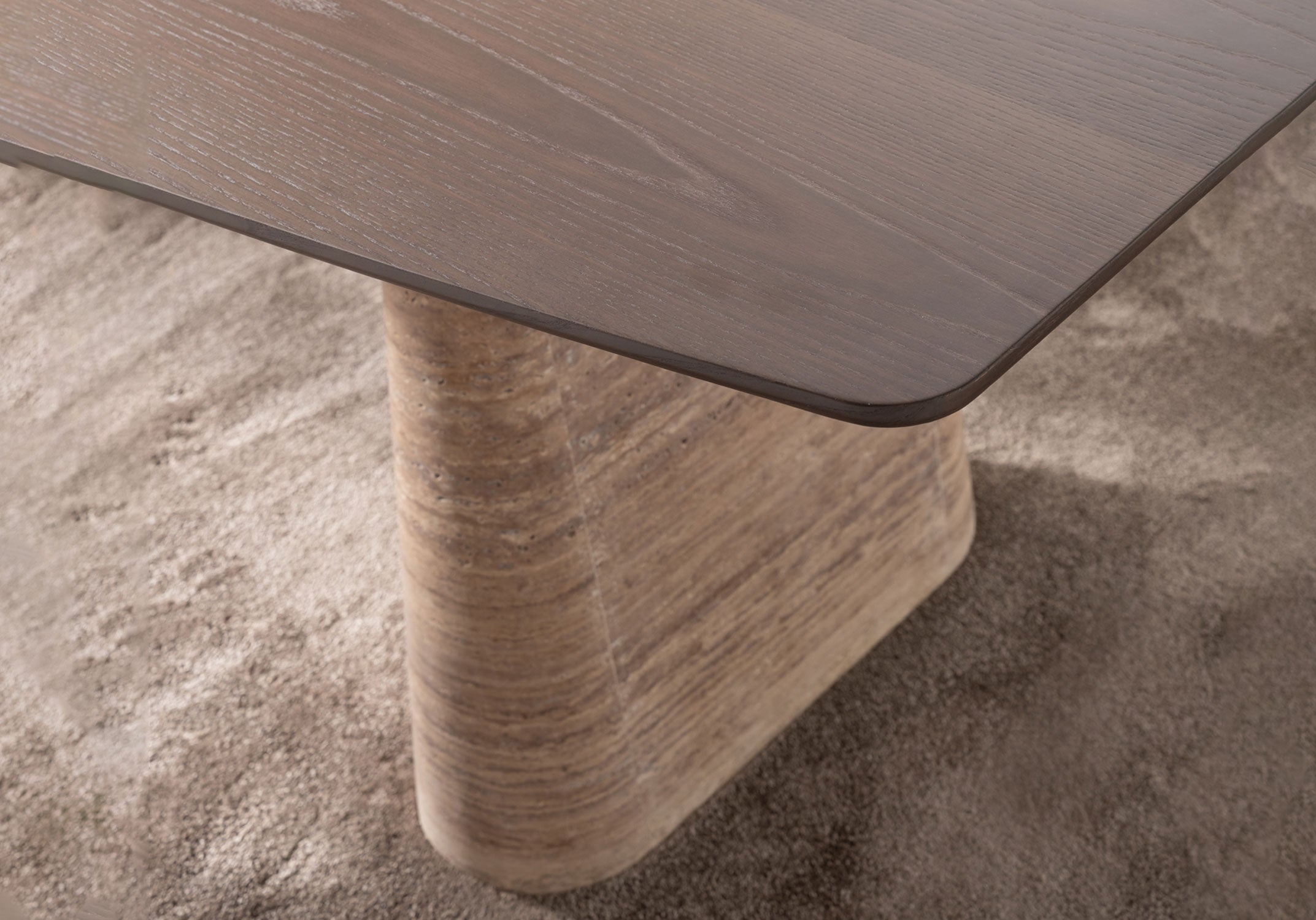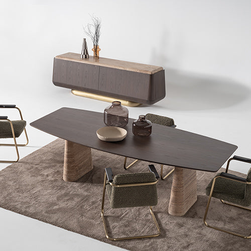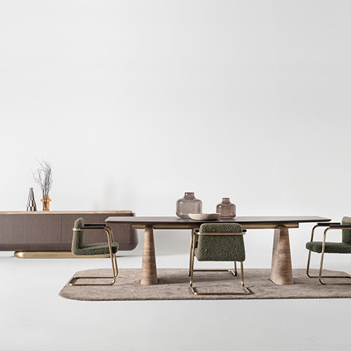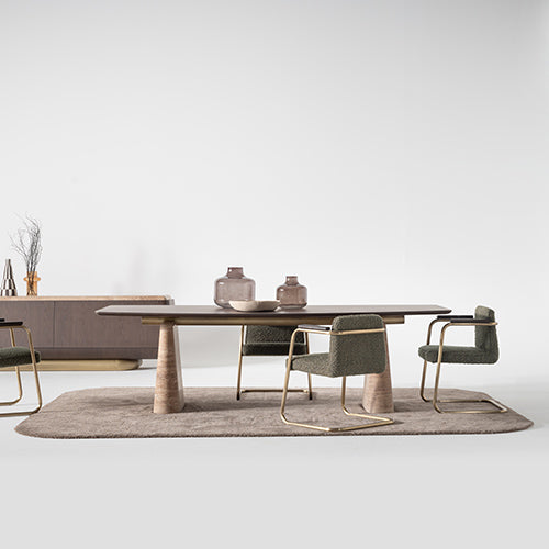 Doğal dokuların dengeli birlikteliğiyle tasarlanan Eden Yemek Masası, mocha kaplama ve özel üretim doğal mermerin bir arada kullanıldığı zarif bir form sunar. Geniş yüzeyi sayesinde kalabalık sofralar için konforlu bir alan oluştururken, sade çizgileri yemek alanlarında sıcak ve davetkâr bir atmosfer yaratır. Zamansız tasarımıyla hem modern hem de klasik yorumlara uyum sağlar.