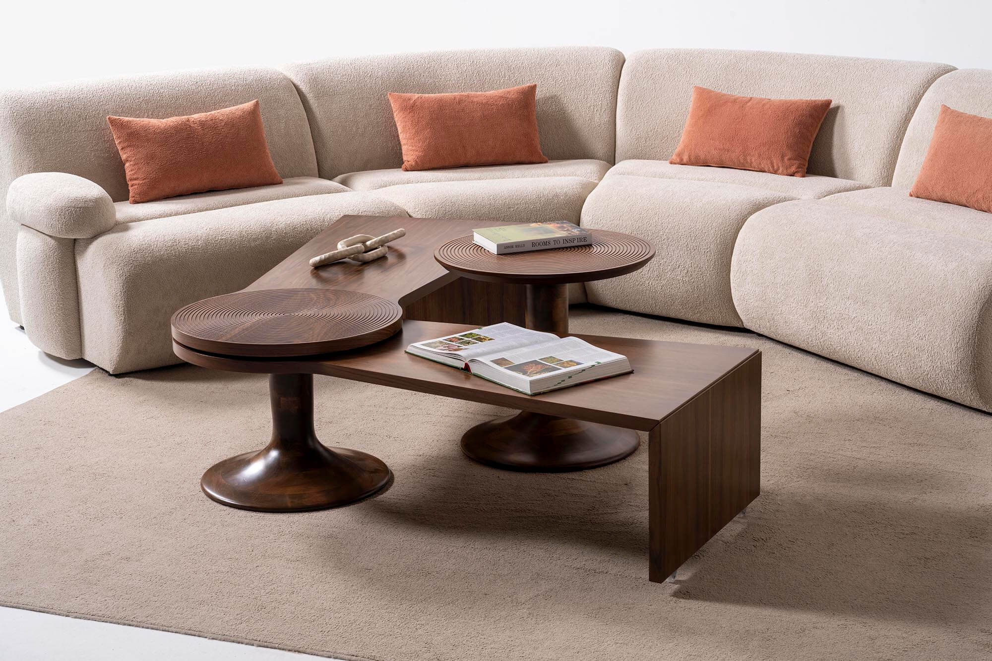 Key Yan Sehpa, ceviz kaplamanın sıcak dokusunu zarif torna ayak detayıyla tamamlayan dengeli bir tasarıma sahiptir. Kompakt ölçüleri sayesinde koltuk yanı, berjer önü veya yatak odalarında pratik bir kullanım sunar. Sade formu ve doğal görünümüyle farklı dekorasyon stillerine kolayca uyum sağlar.