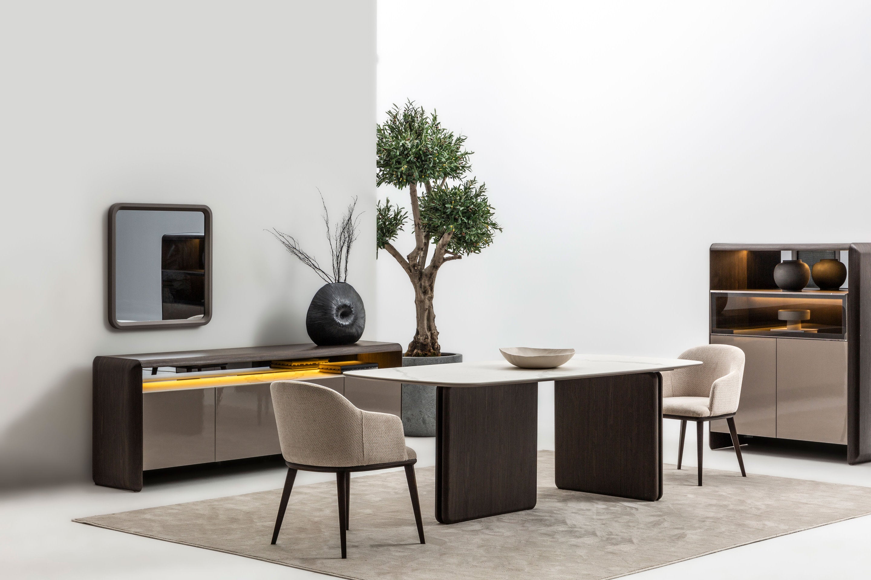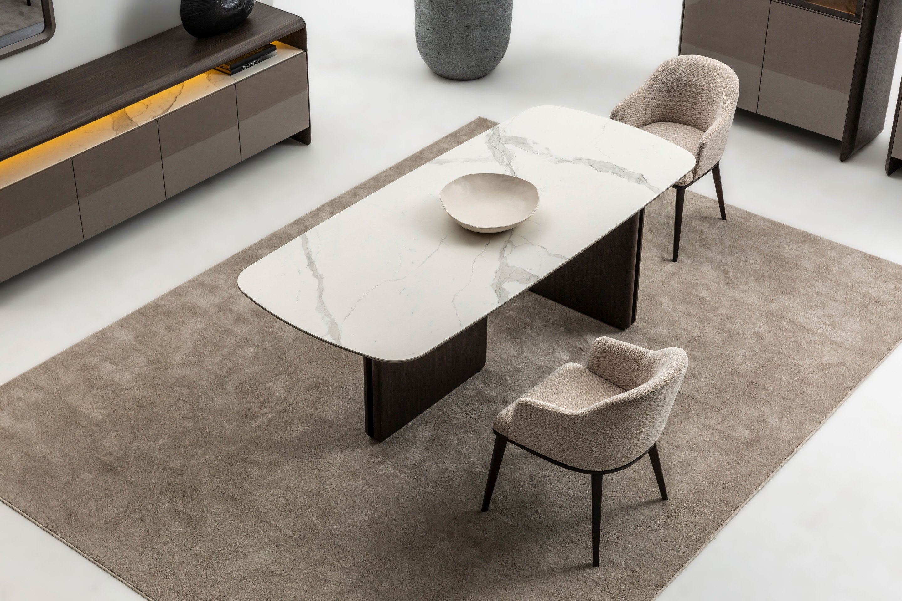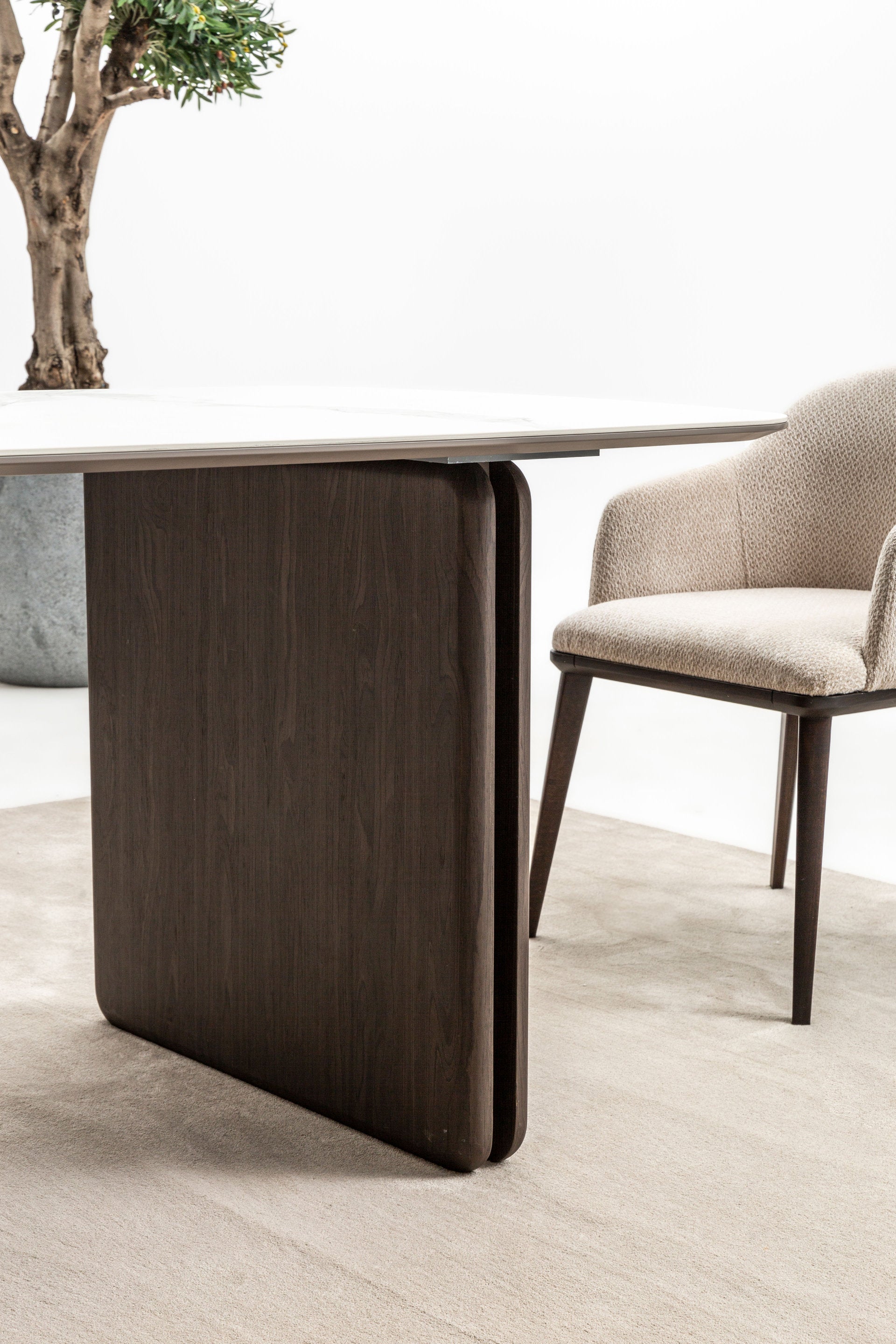 Dengeli oranları ve sade formuyla tasarlanan Orca Yemek Masası, koleksiyonun sandalyeleriyle bütünlük oluştururken farklı sandalye ve oturma düzenleriyle birlikte de rahatlıkla kullanılabilir. Geniş yüzeyi sayesinde yemek alanlarında konforlu bir kullanım sunar. Zamansız çizgileri, masayı hem günlük kullanım hem de misafir ağırlama için ideal bir parça haline getirir.