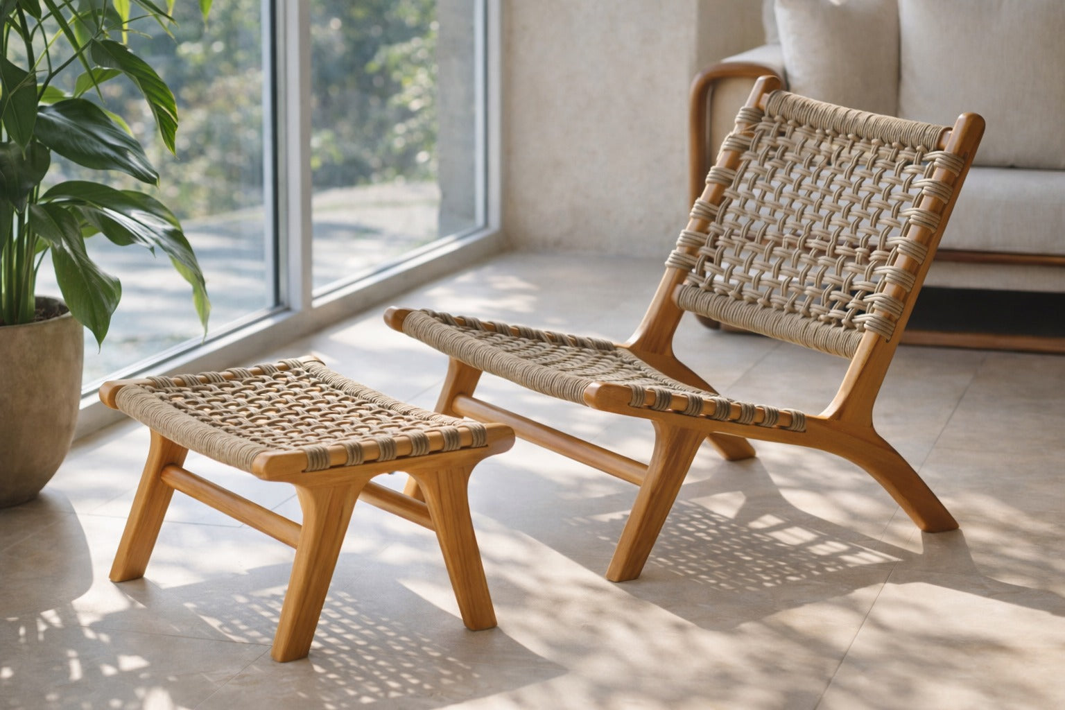 Bali Berjer + Puf, doğal ahşap yapısı ve el örgüsü oturum yüzeyi ile yaşam alanlarına sıcak, özgün ve sofistike bir karakter kazandırır. Fırınlanmış 1. sınıf kayın ağacından üretilen sağlam iskeleti uzun ömürlü kullanım sunarken; el işçiliğiyle hazırlanan örgü detayları ürüne doğal ve zarif bir estetik katar. Ergonomik oturum yapısı sayesinde konforlu bir deneyim sağlar. Oturma odası, salon, veranda veya dinlenme alanlarında hem dekoratif hem de işlevsel bir tamamlayıcı olarak ideal bir tercihtir.