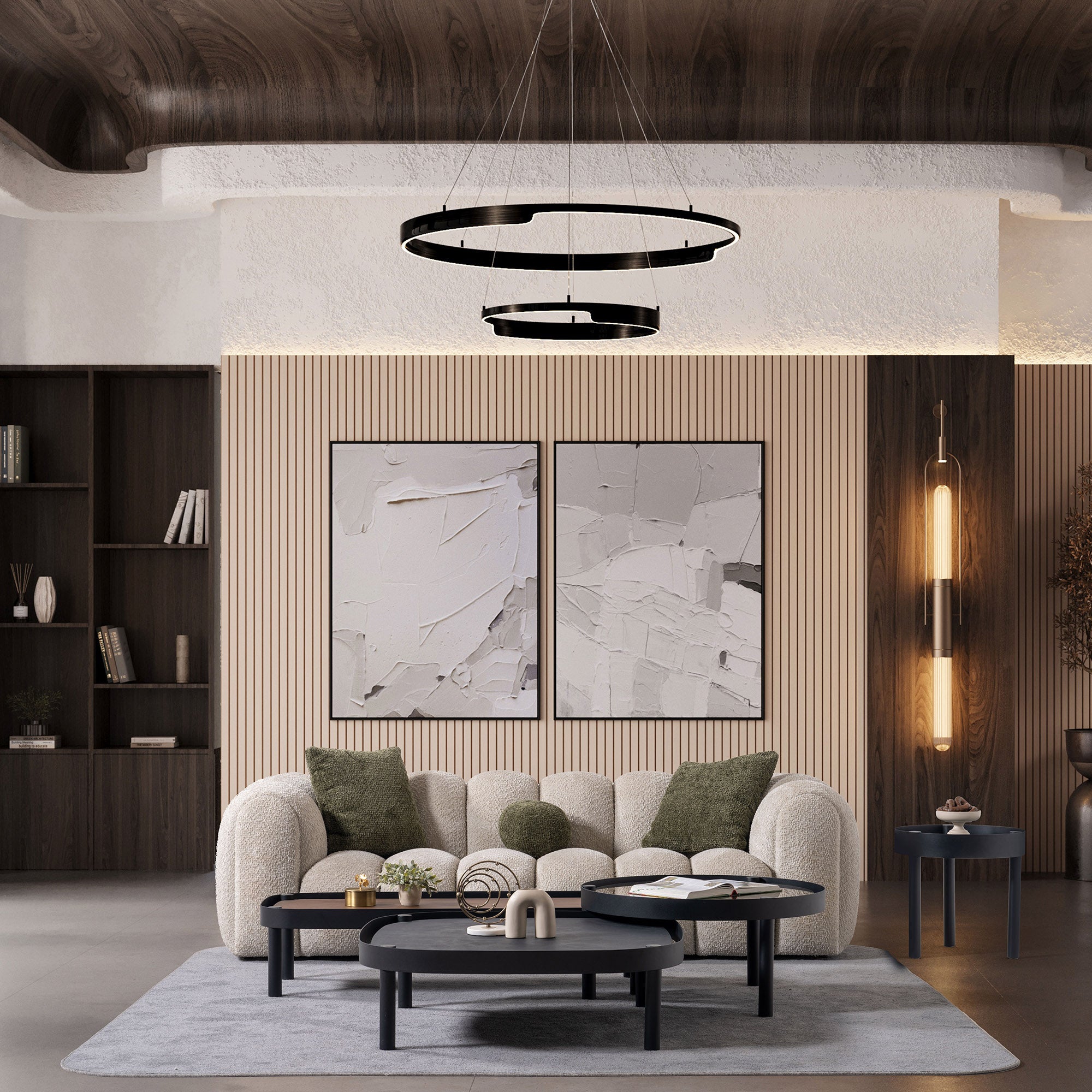 Bohem Orta Sehpa, modern metal iskeleti ve ceviz kaplamanın sıcak dokusunu bir araya getirerek hem zarif hem de güçlü bir duruş sunar. İnce çizgileri ve dengeli oranları sayesinde farklı dekorasyon stillerine uyum sağlar. Geniş yüzeyi, hem günlük kullanım hem de dekoratif yerleşimler için ideal bir alan oluşturur.